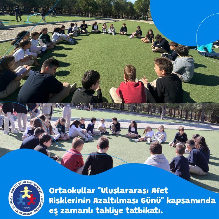 Bakanlığımız tarafından yürütülen “Yeşil Vatan Benim Okulum Geleceğe Çare” etkinlikleni kapsamında, 2025-2026 eğitim öğretim yılı tematik takviminde ekim ayı “Afetler ve Dayanıklılık” ayı olarak belirlenmiştir. Bu kapsamda etkinliklerimizi tamamlarken 13 Ekim Dünya “Afet Risklerinin Azaltılması Günü” çerçevesinde, öğrencilerimizin afet bilincini güçlendirmek amacıyla 13 Ekim Pazartesi günü eş zamanlı tahliye tatbikatı gerçekleştirilmiştir.