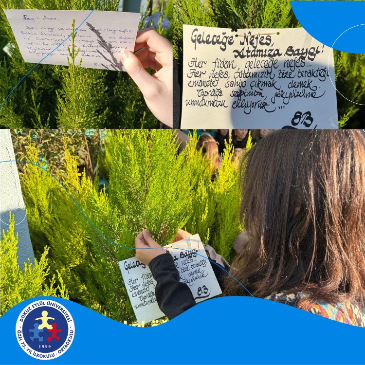 Bakanlığımızın Yeşil Vatan: Benim Okulum Geleceğe Çağrı kılavuzları çerçevesinde 10 Kasım Atatürk’ü Anma Günü ve 11 Kasım Millî Ağaçlandırma Günü’nde “Yeşil Vatan” için fidanlarımızı toprakla buluşturduk.