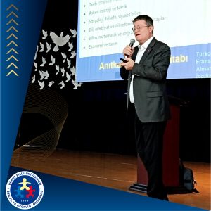 Dokuz Eylül Üniversitesi Atatürk İlkeleri ve İnkılap Tarihi Enstitüsü Öğretim Üyesi Prof. Dr. Mehmet Emin Elmacı, Atatürk’ü Anma Haftası kapsamında okulumuzda “Mustafa Kemal Atatürk ve Liderlik Özellikleri” başlıklı sunumlarını gerçekleştirdi.