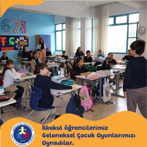 29 Ekim Cumhuriyet Bayramı etkinlikleri kapsamında “Geleneksel Çocuk Oyunları” sınıflarımızda eş zamanlı olarak oynandı. Öğrencilerimiz mendil kapmaca, halat çekme, yakar top gibi oyunlarla hem doyasıya eğlendi hem de kültürümüzün güzel mirasını yaşattı.